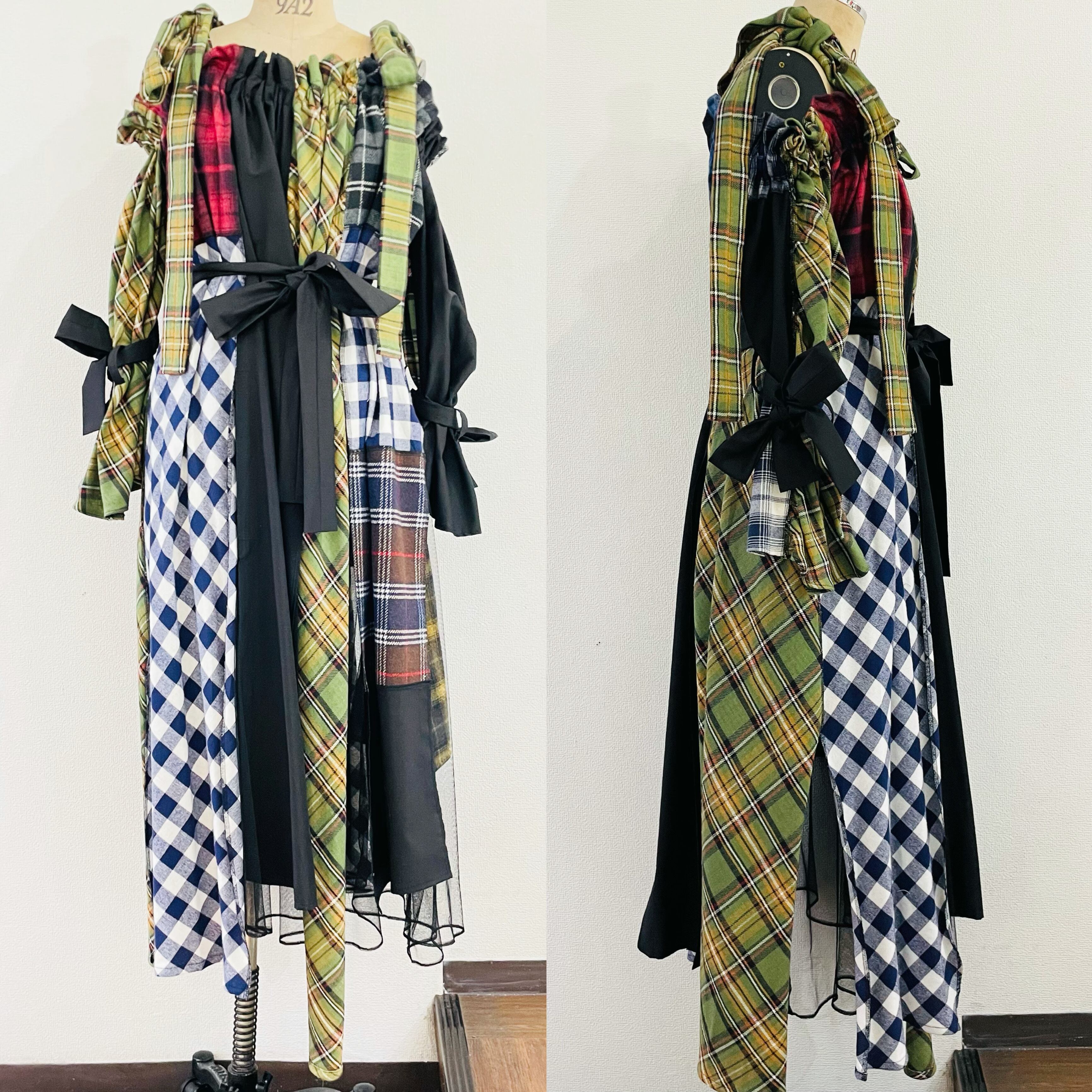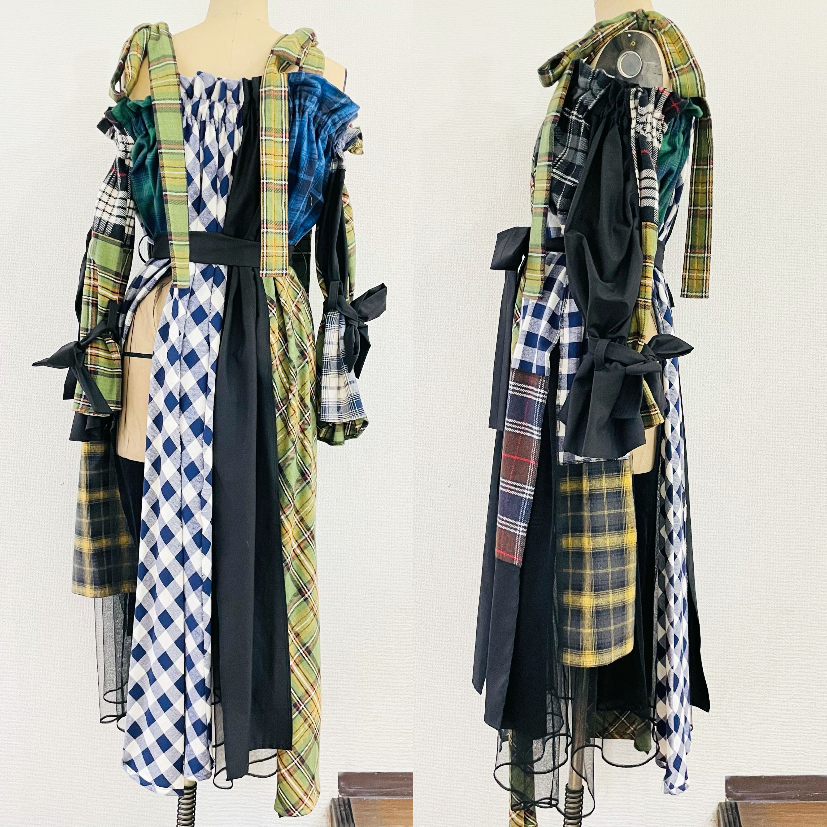 JAHWOR オフショルワンピース チェックMIX