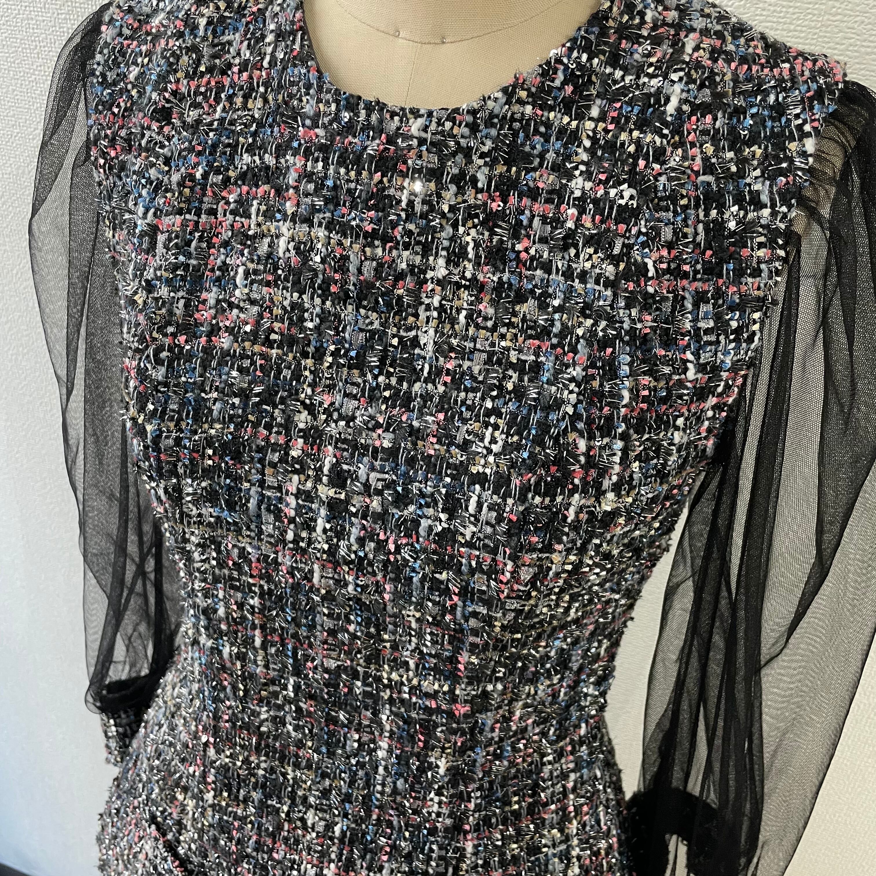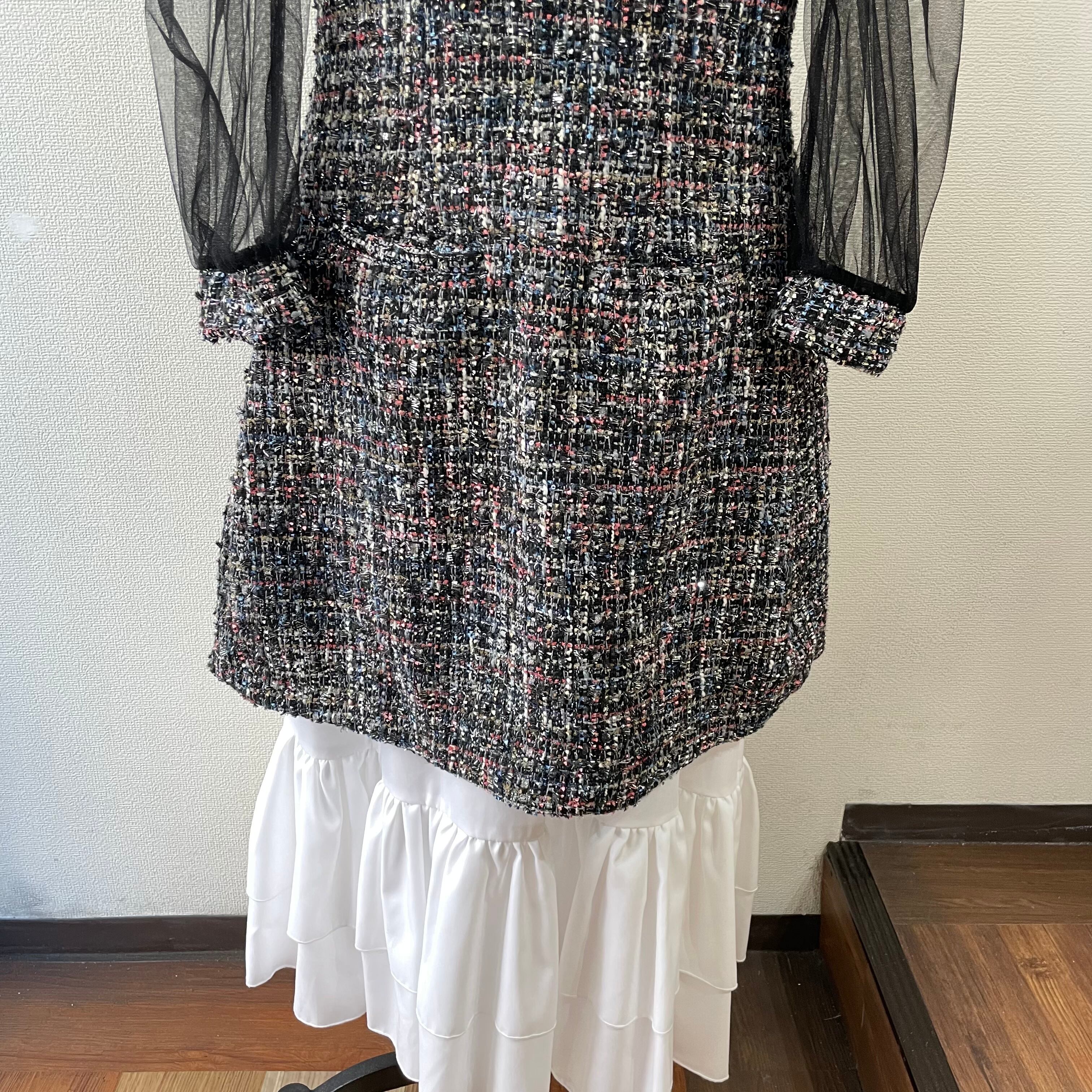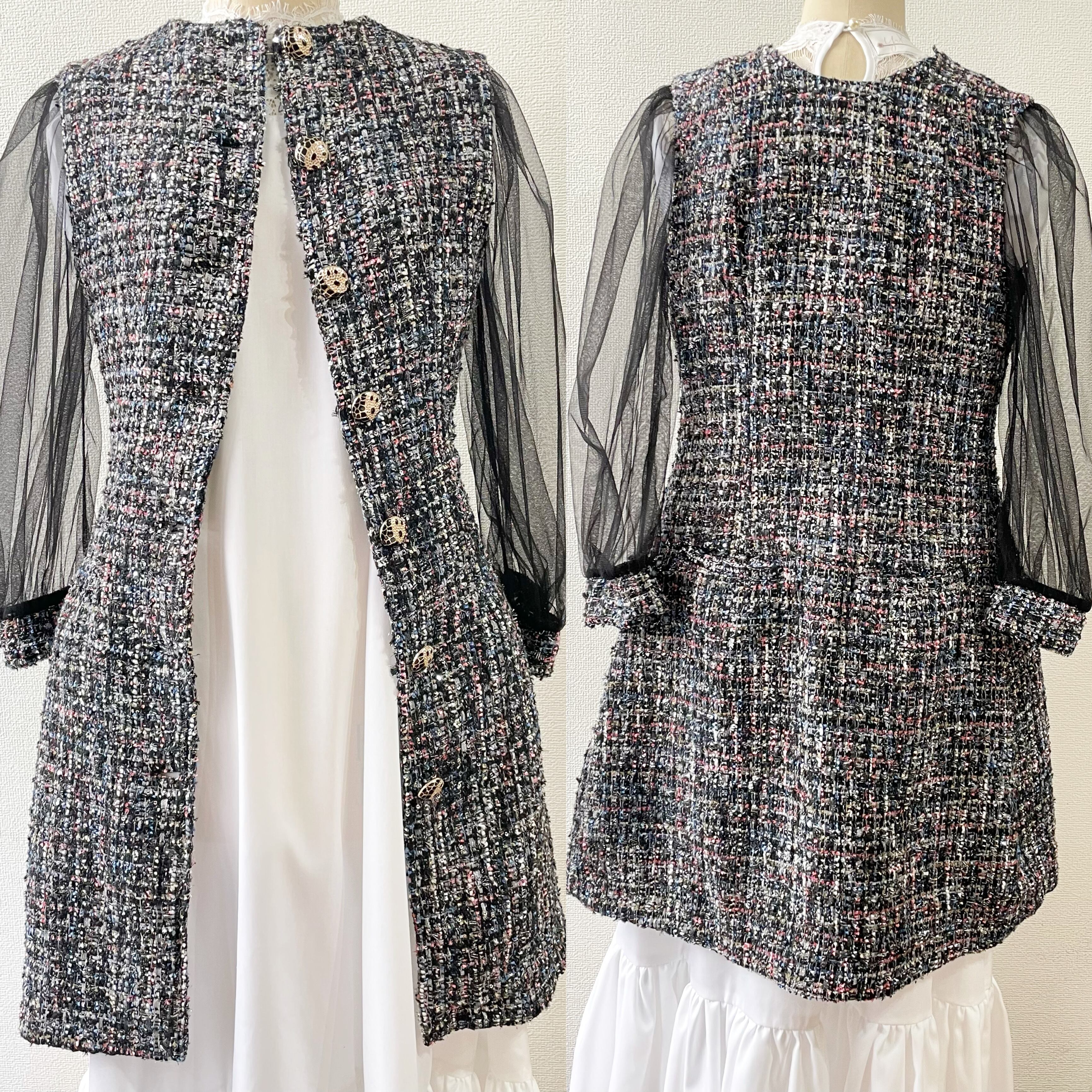 JAHWOR ツイードジャケットワンピース チュール袖