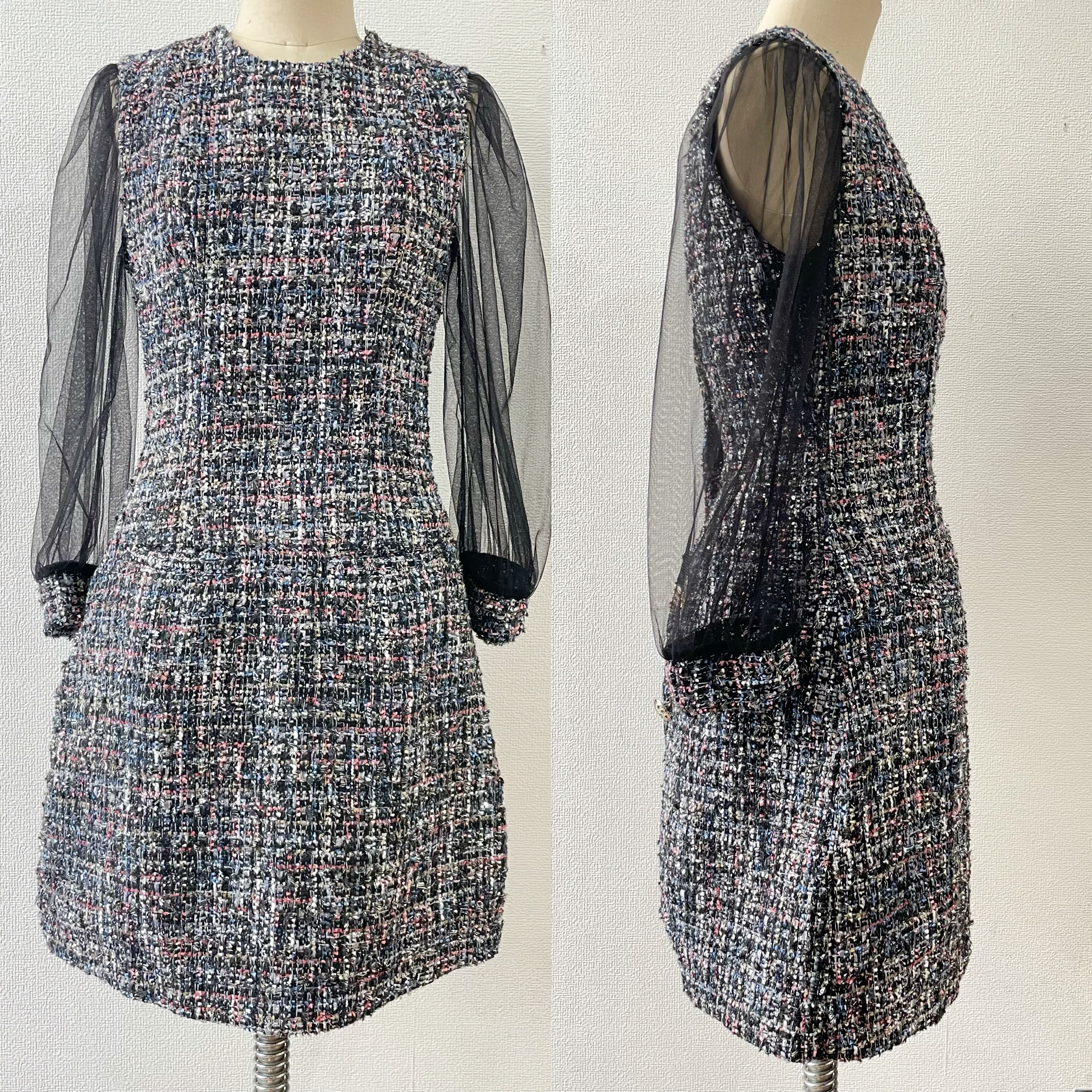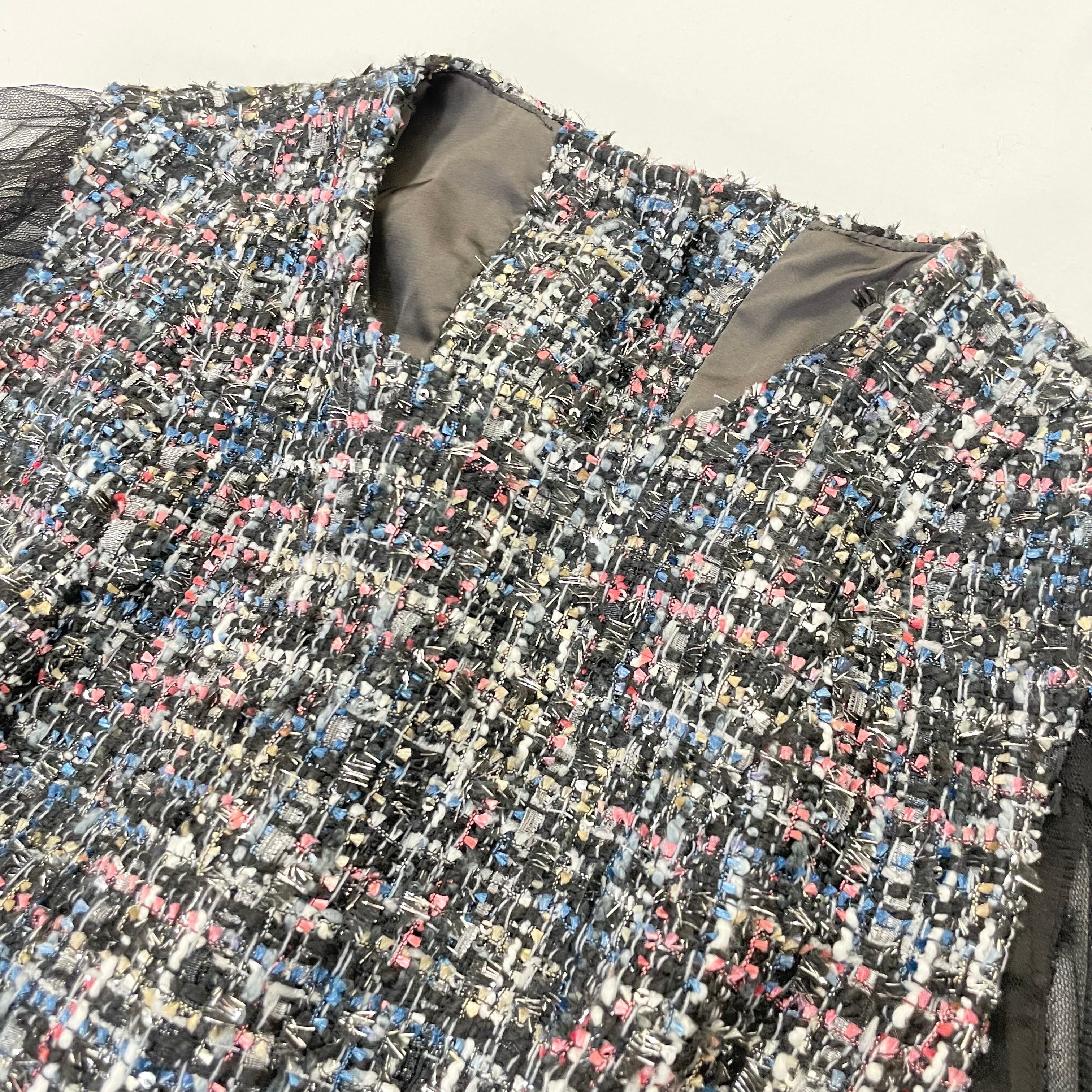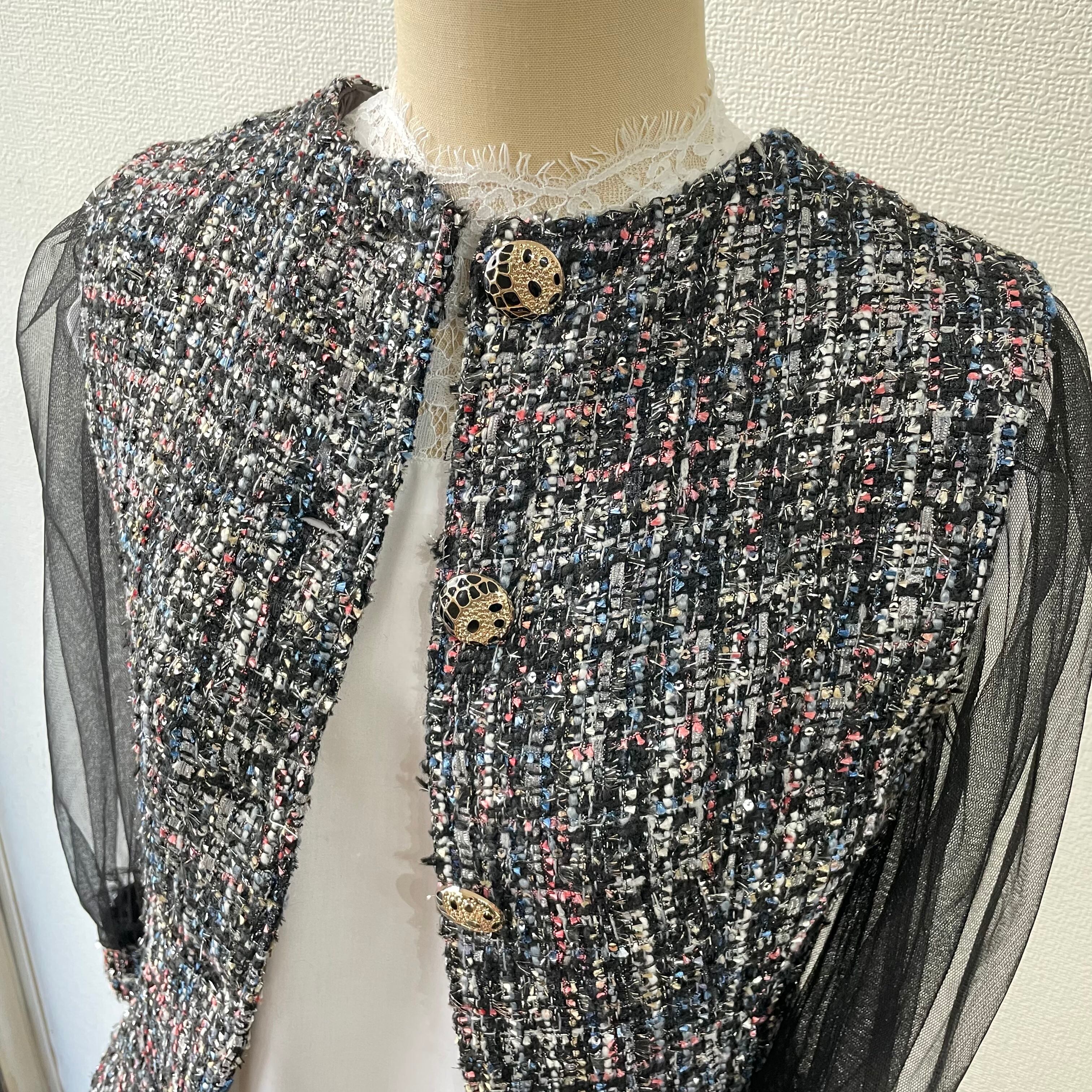 JAHWOR ツイードジャケットワンピース チュール袖