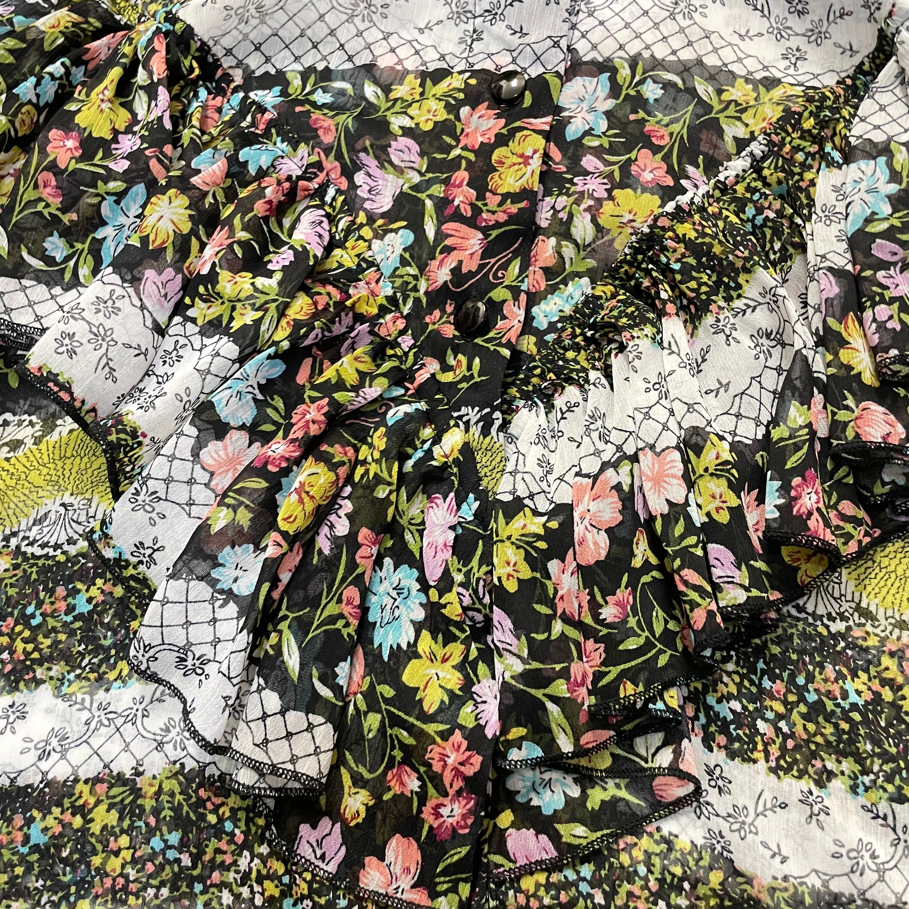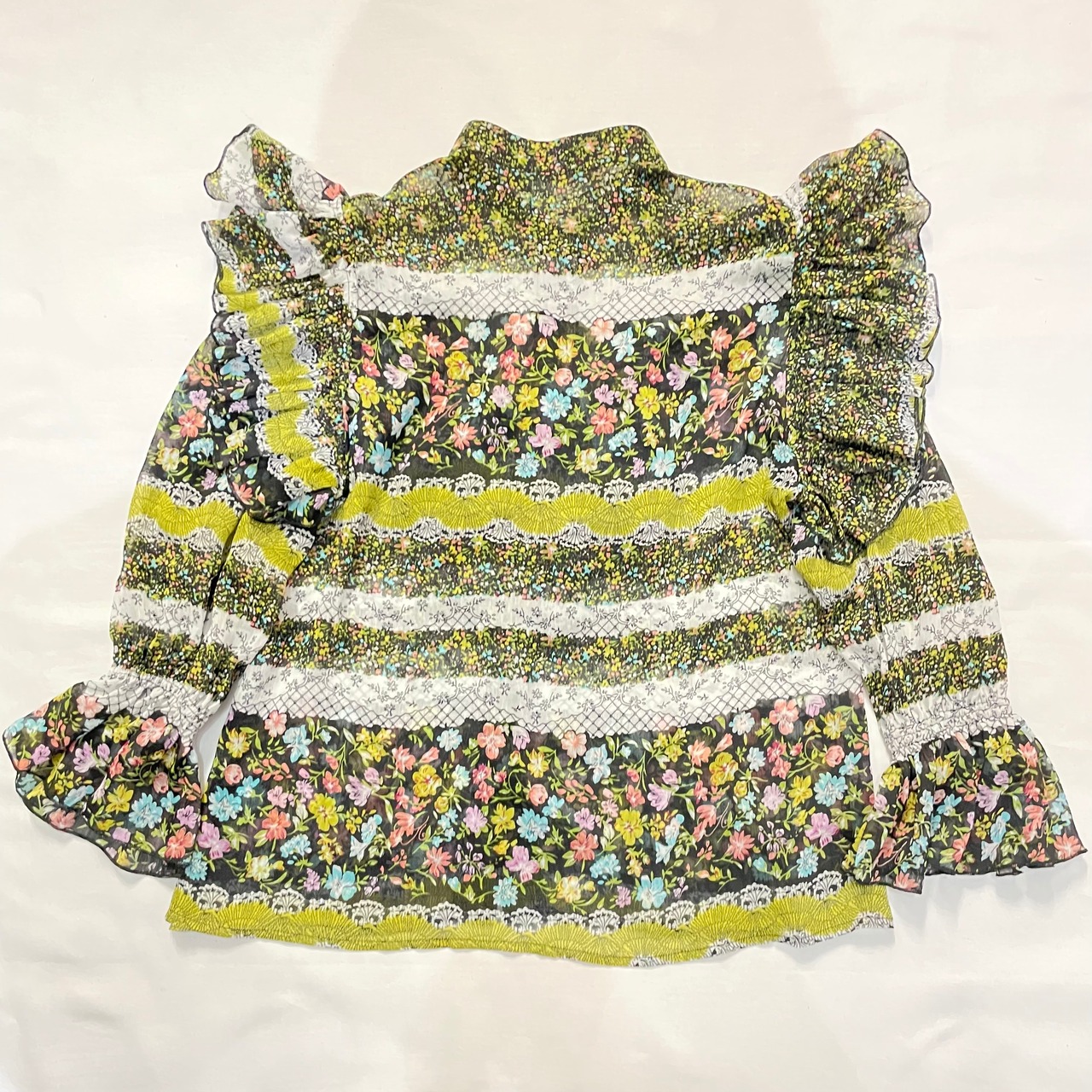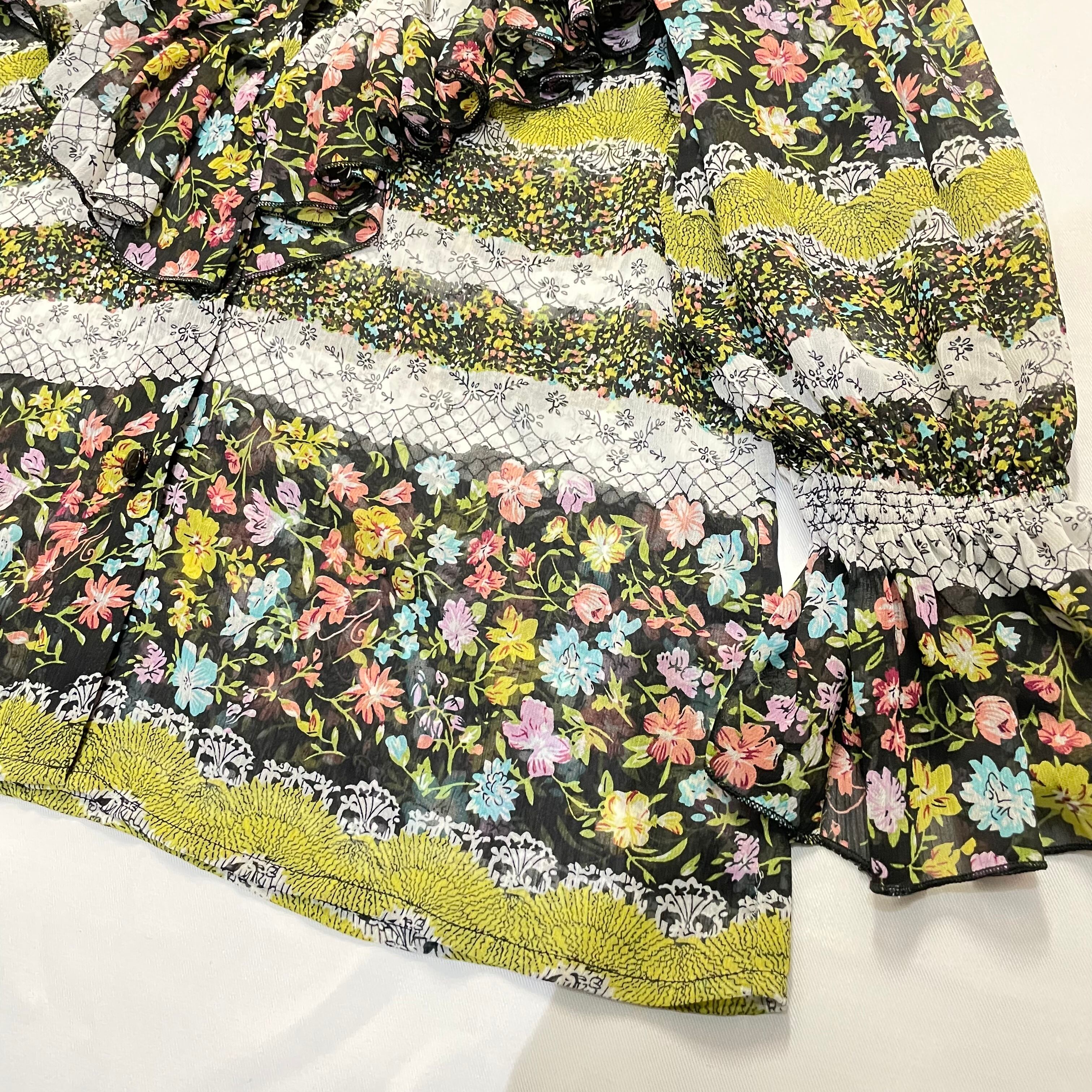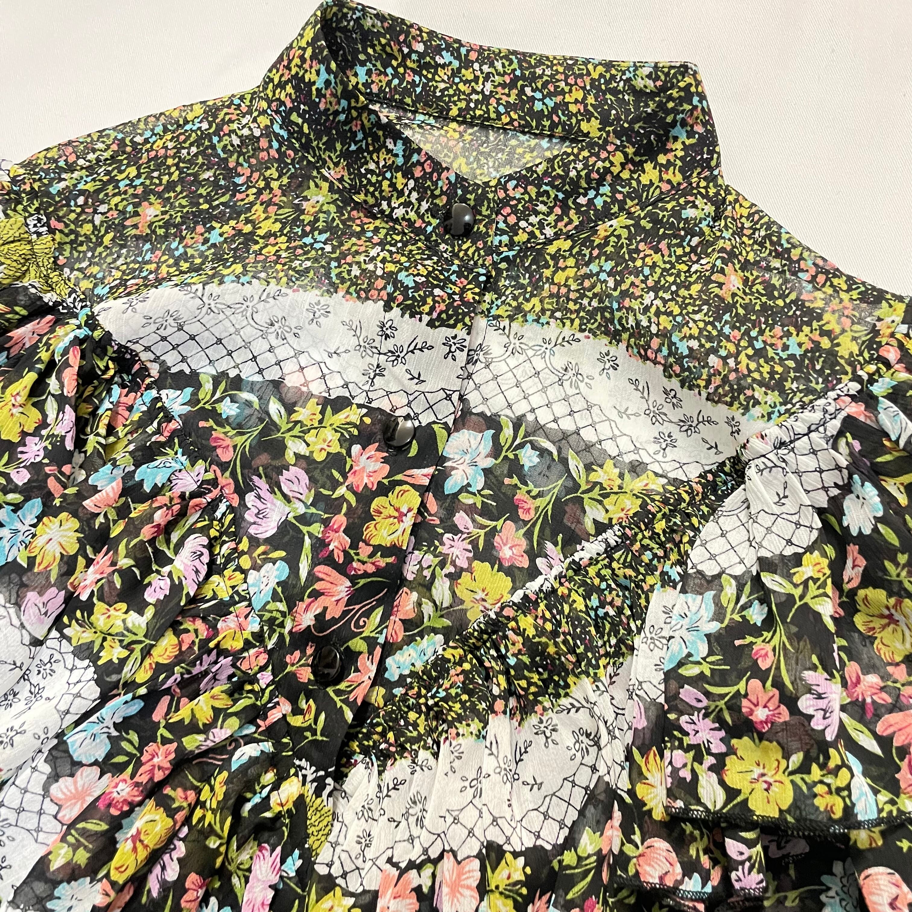 JAHWOR フリルブラウス 花柄