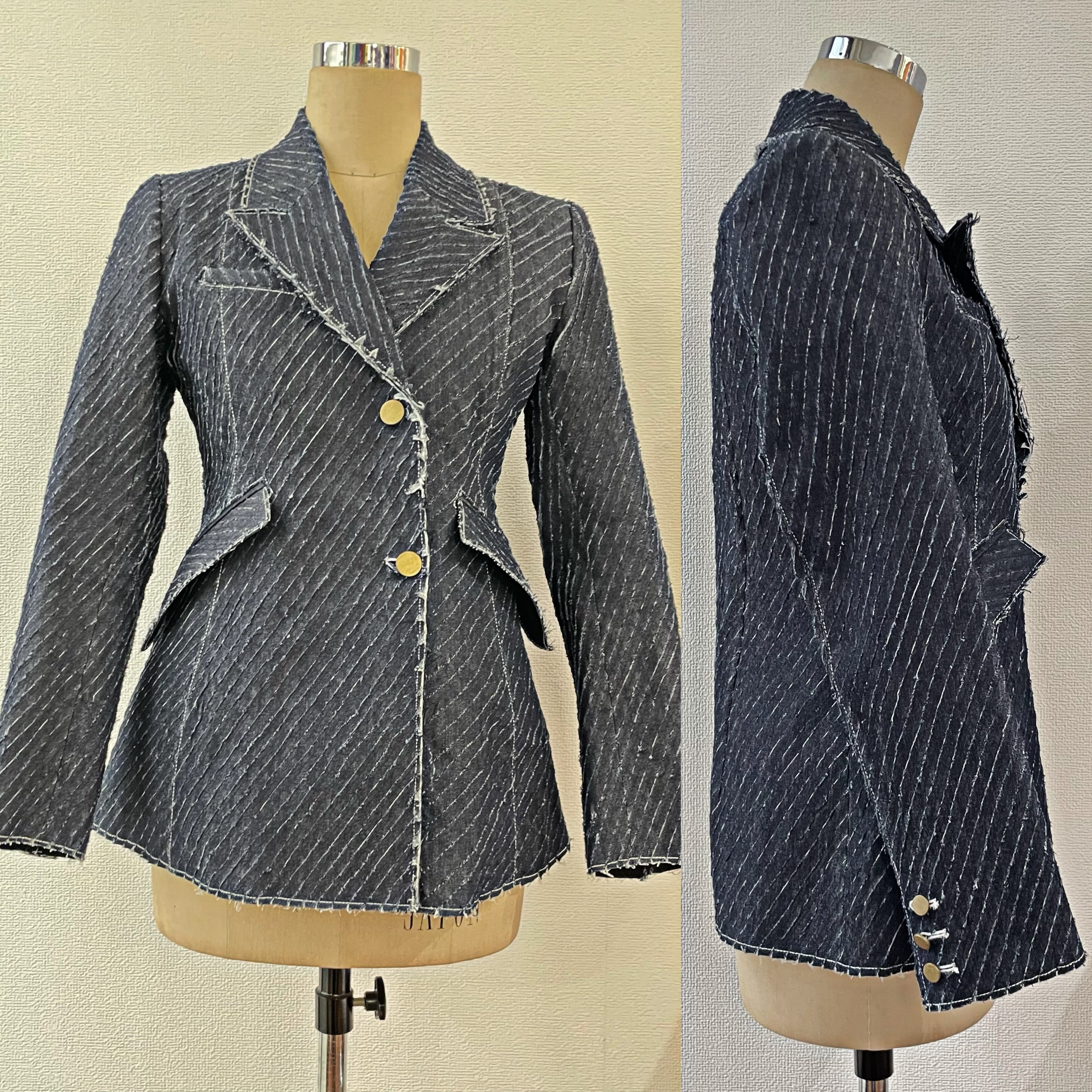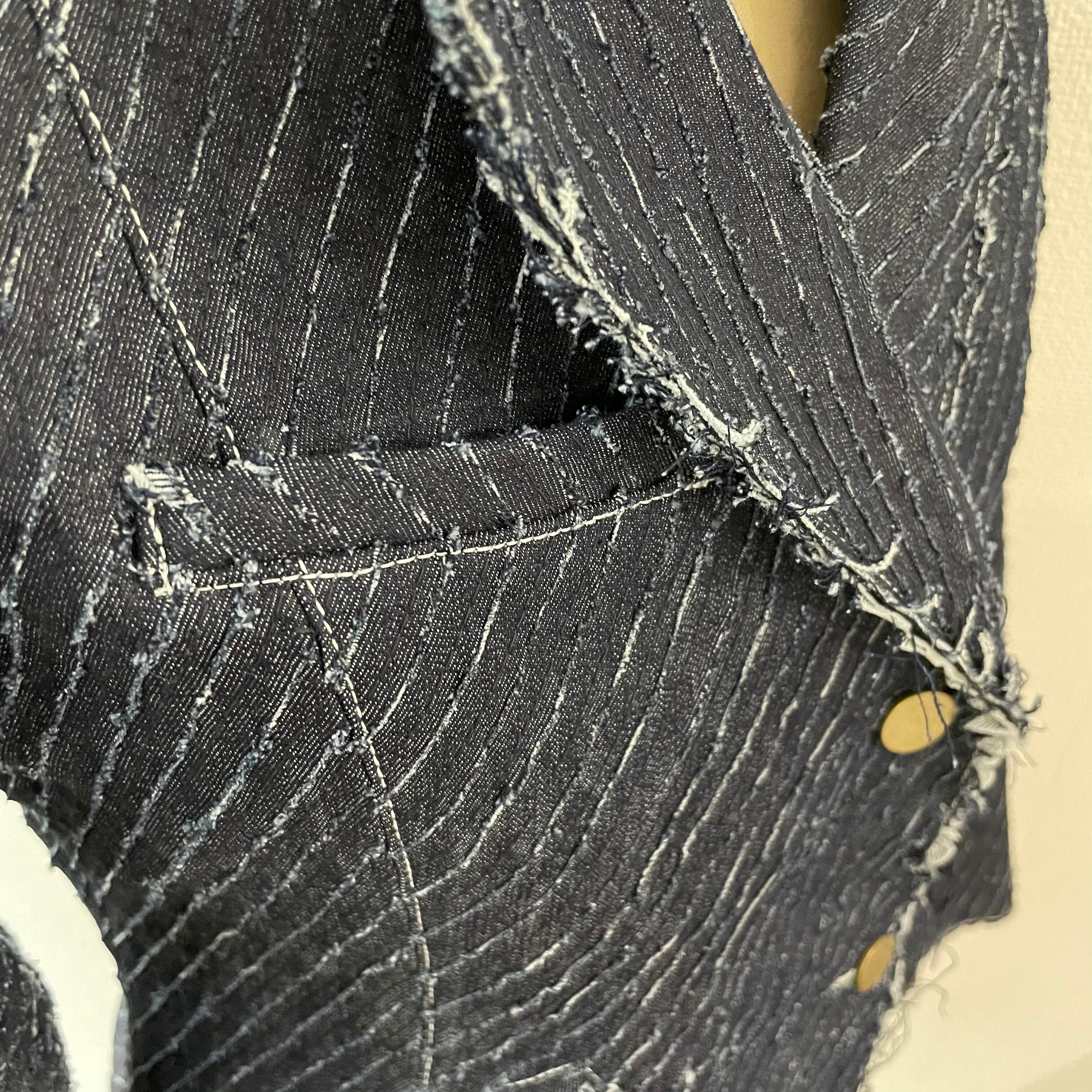 ほつれはデザインとしてお楽しみください、着る度に表面の生地が変化していきます