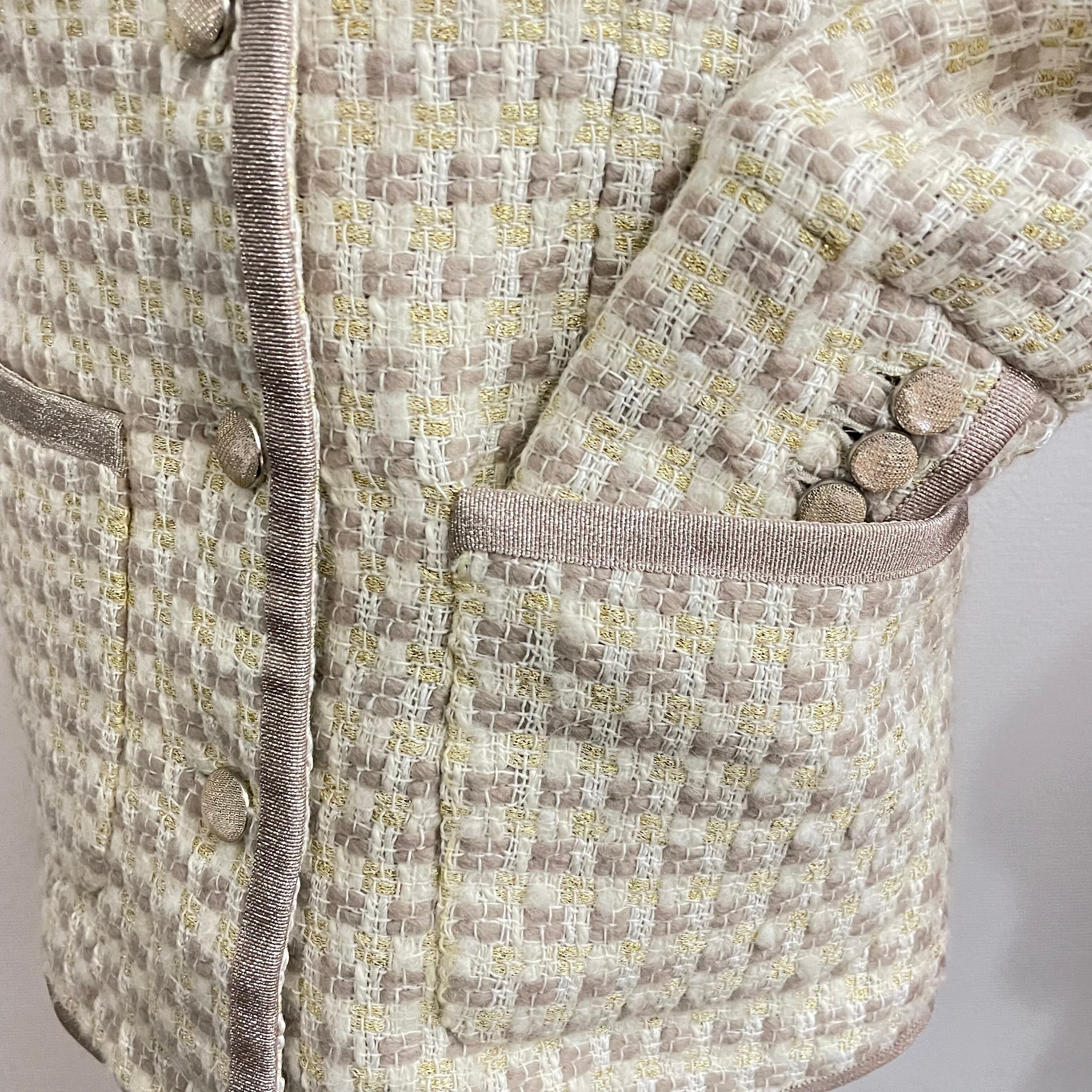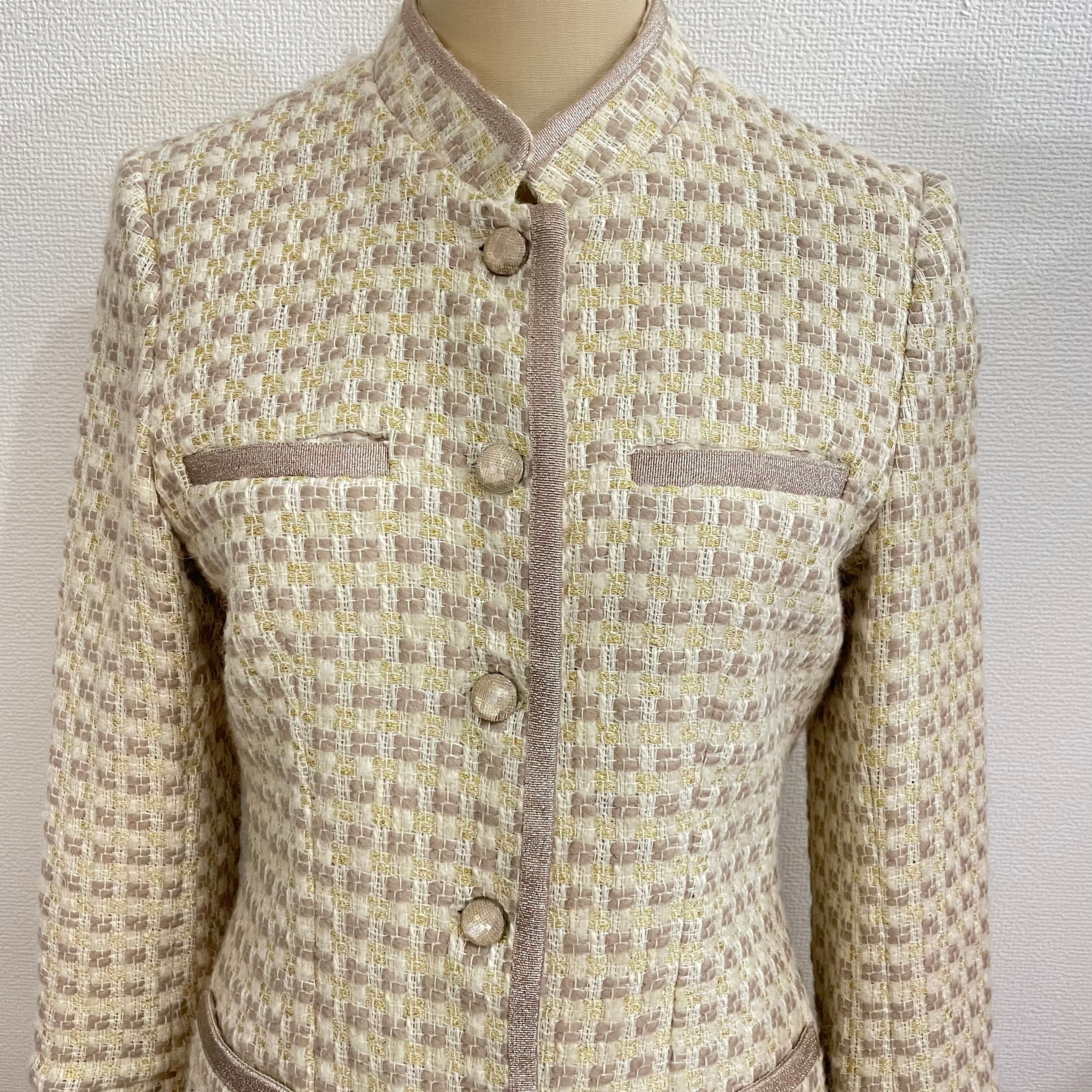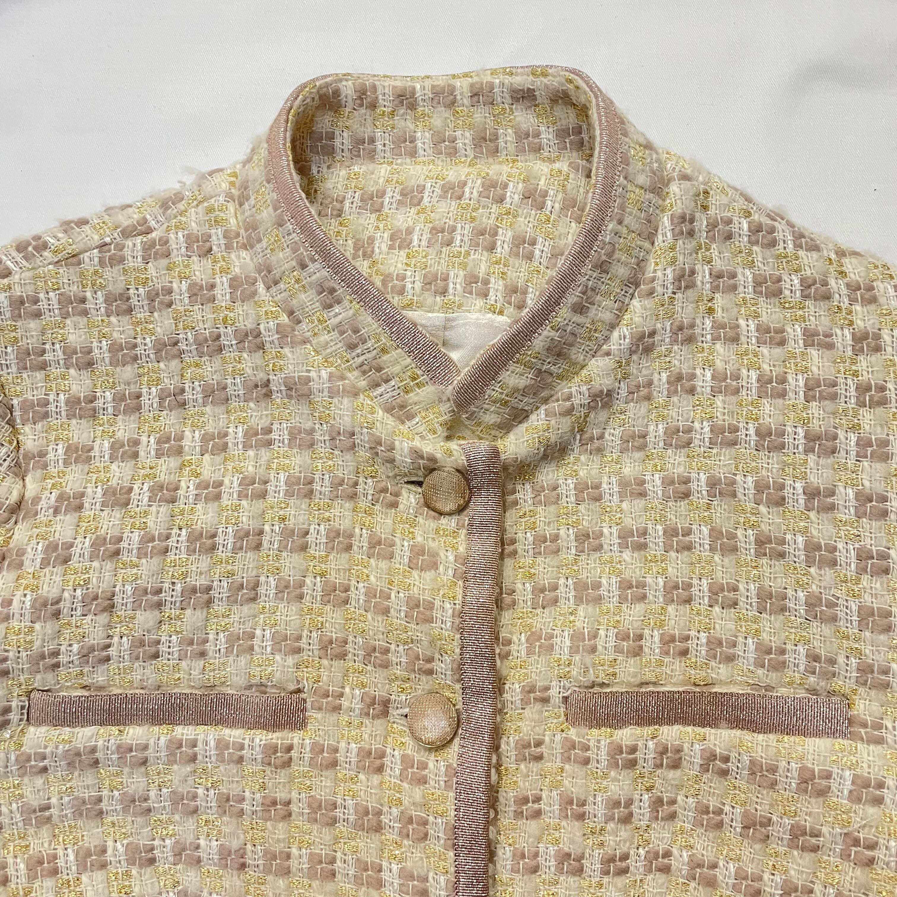 ◼︎高級ツイードにMOKUBAのリボンでパイピングを施しています