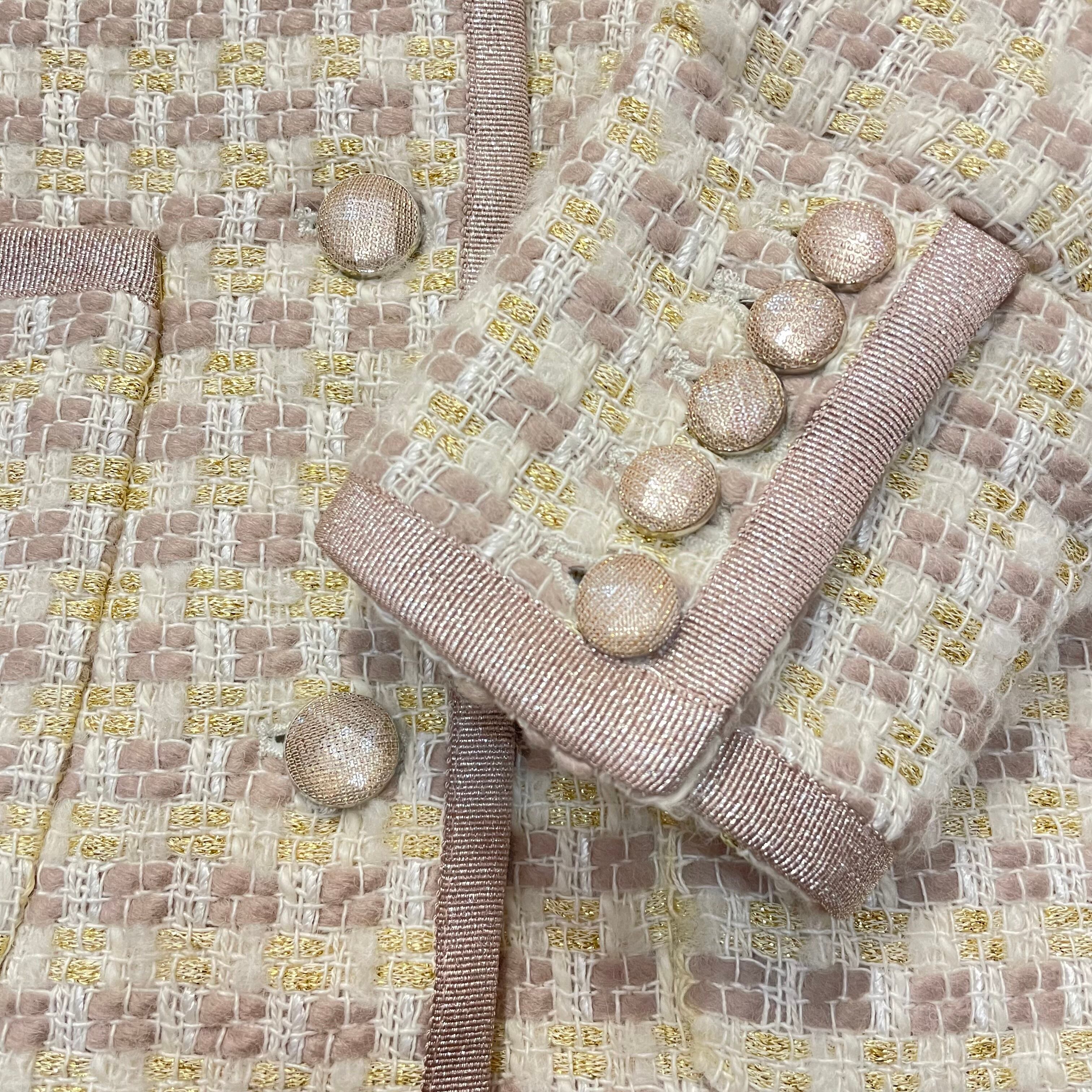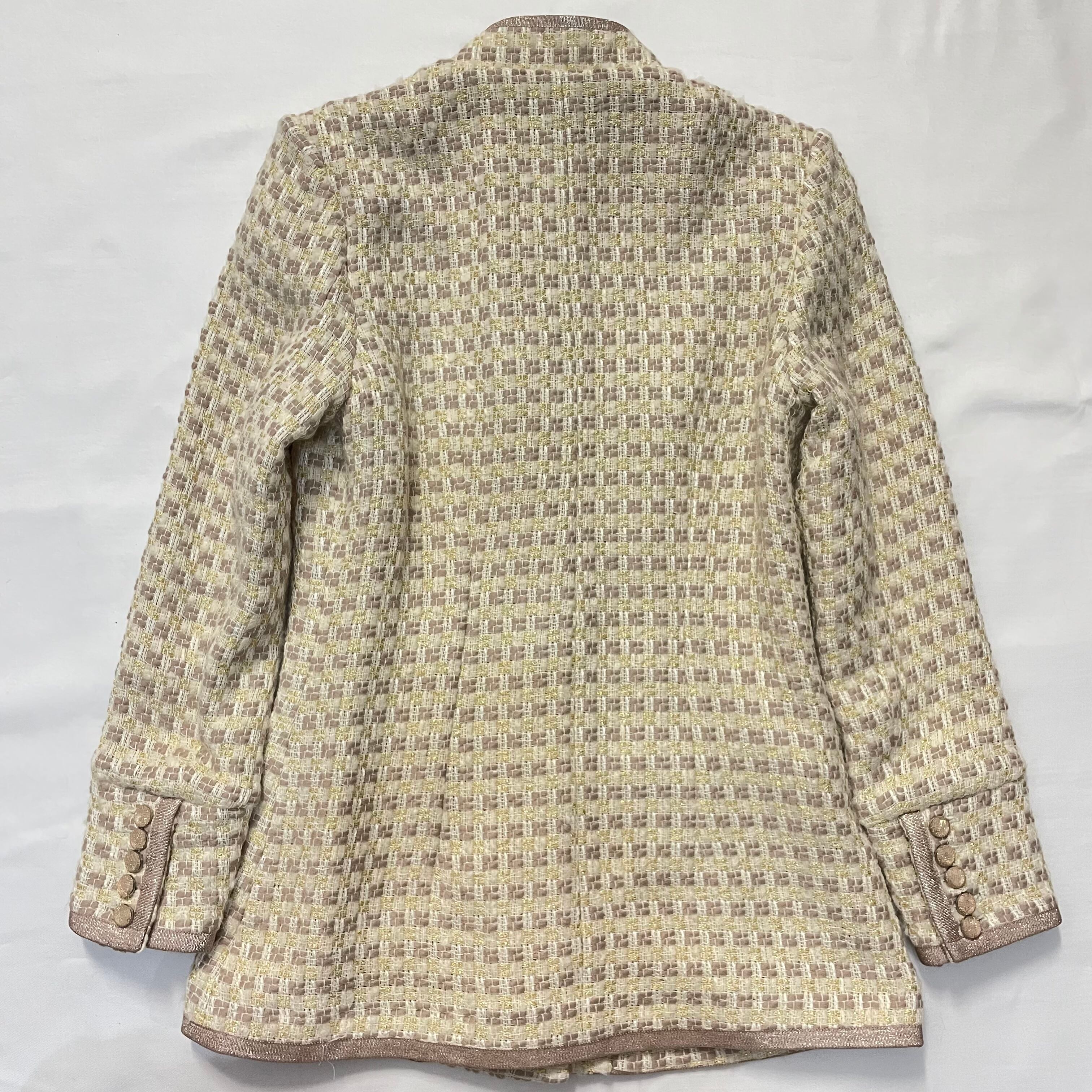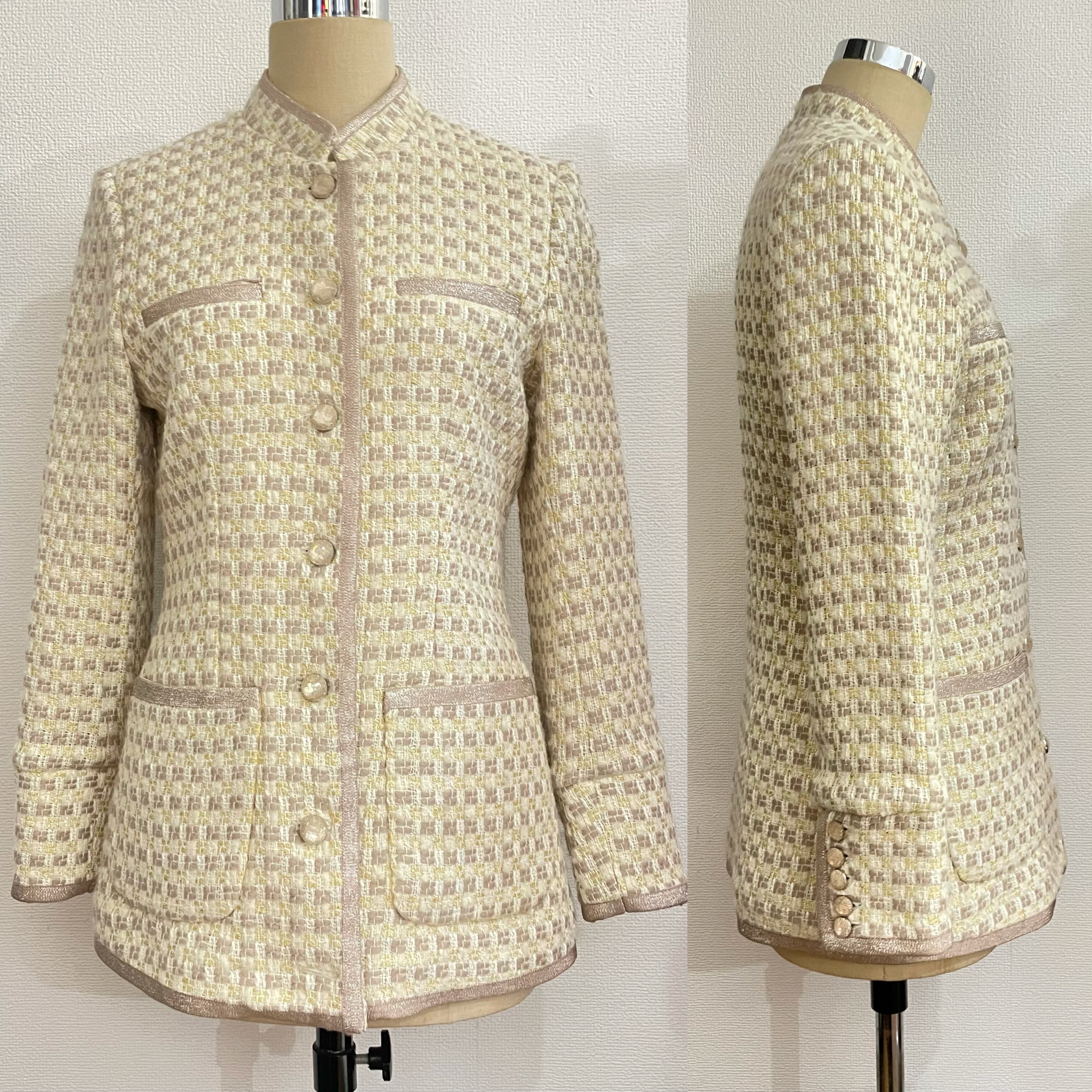 ◼︎高級ツイードにMOKUBAのリボンでパイピングを施しています