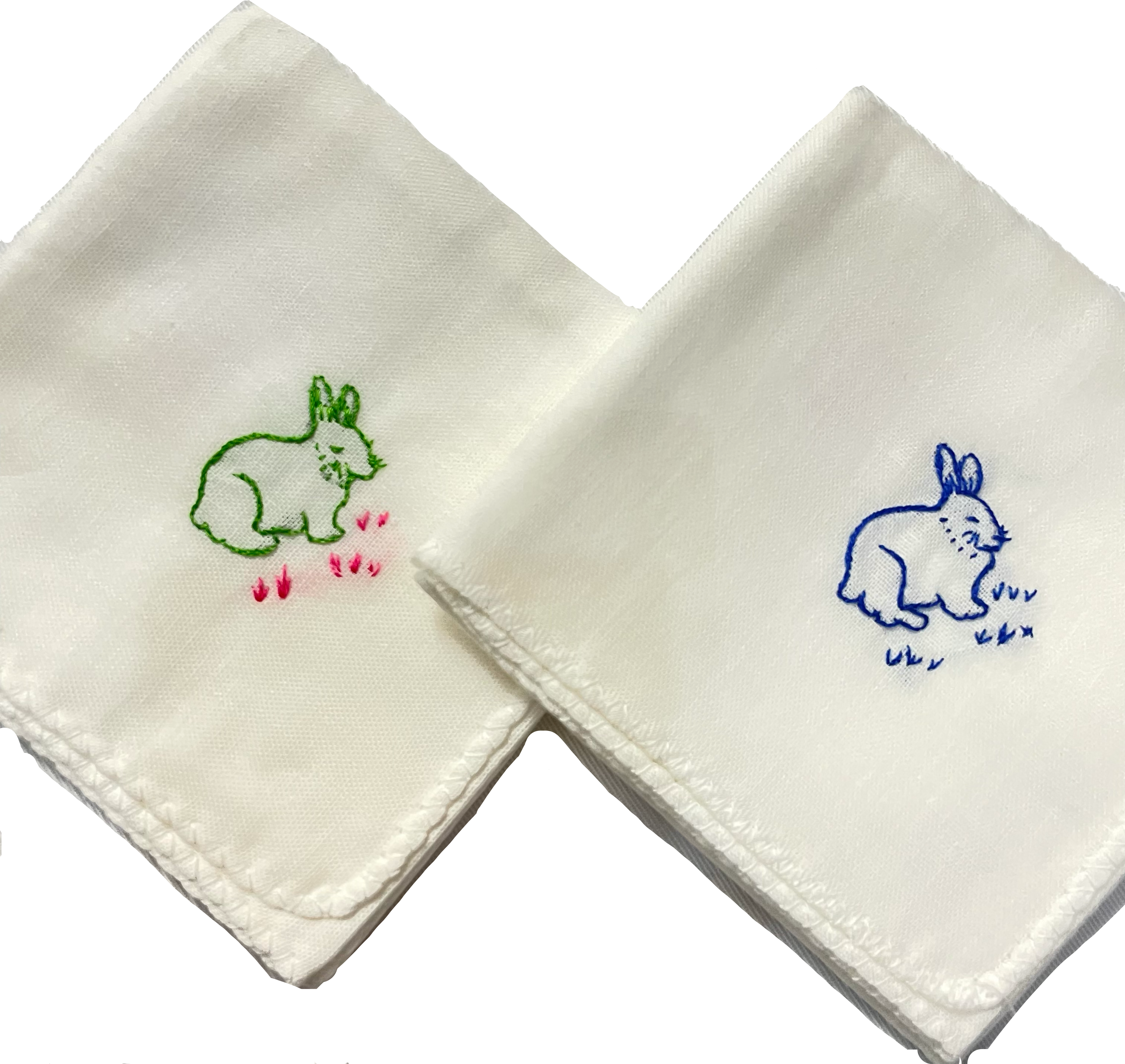 JAHWOR 手刺繍ハンカチ シンプルうさぎ